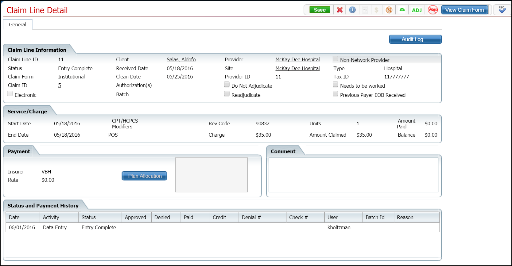 Click the hyperlinked claim line number in the Claim Line column for the client's claim you want to delete.