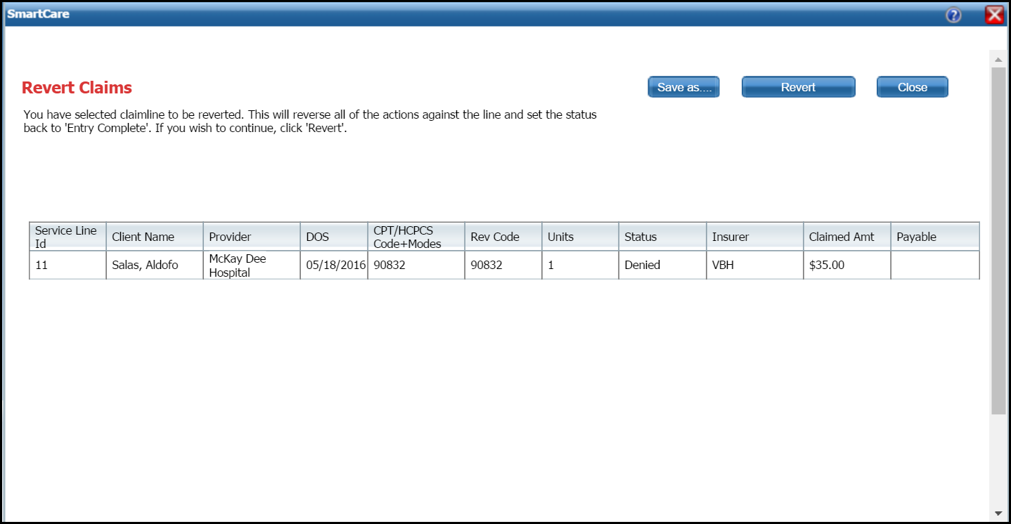 Reverting a claim line means you are undoing any adjudication and processing that was previously performed on the claim line.